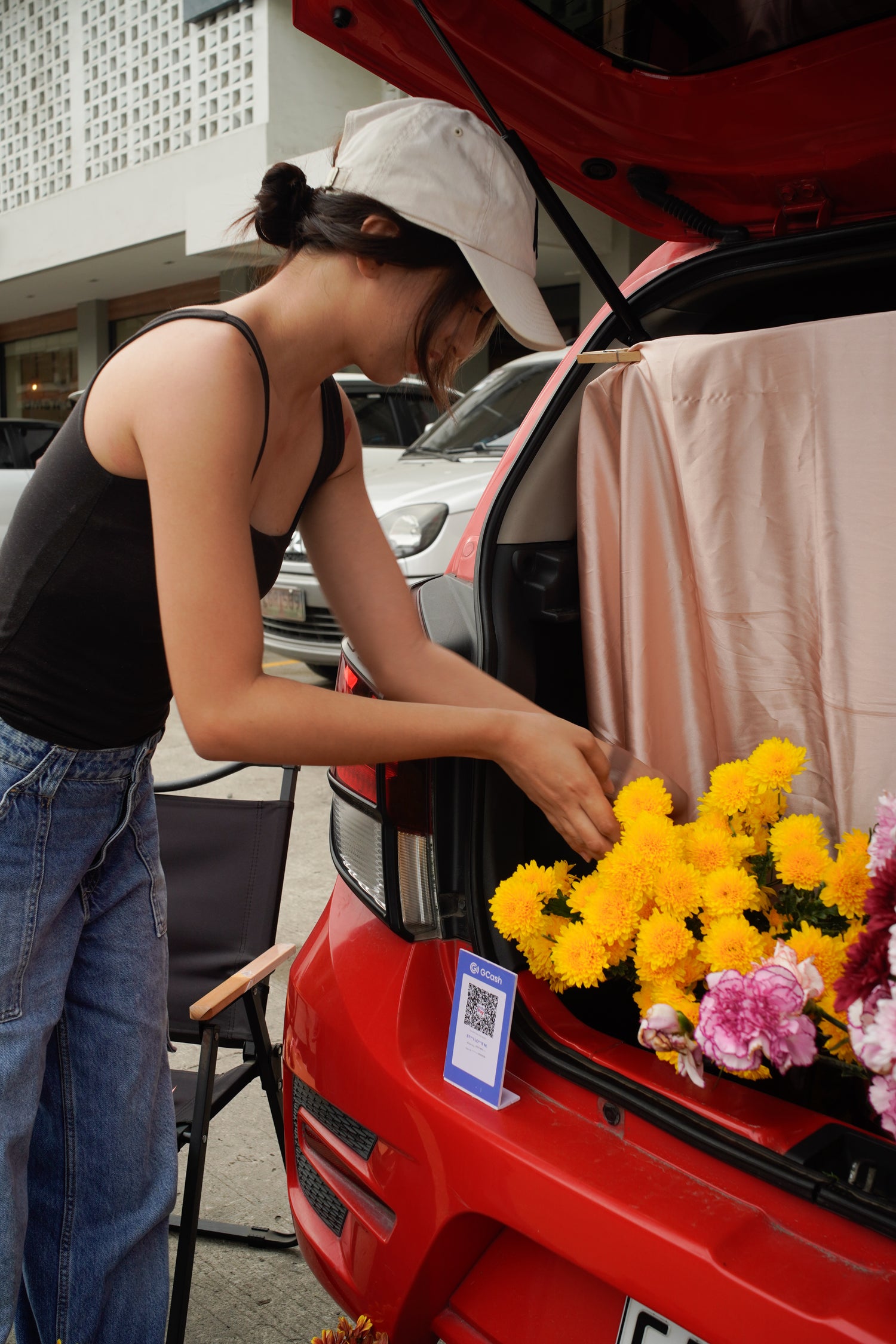For one day only, our Lapu-Lapu space transformed into a small open-air bloom bar. Guests selected fresh flowers arranged beautifully at the back of a bright red car pop-up setup — a charming and unexpected scene that caught the attention of passersby.